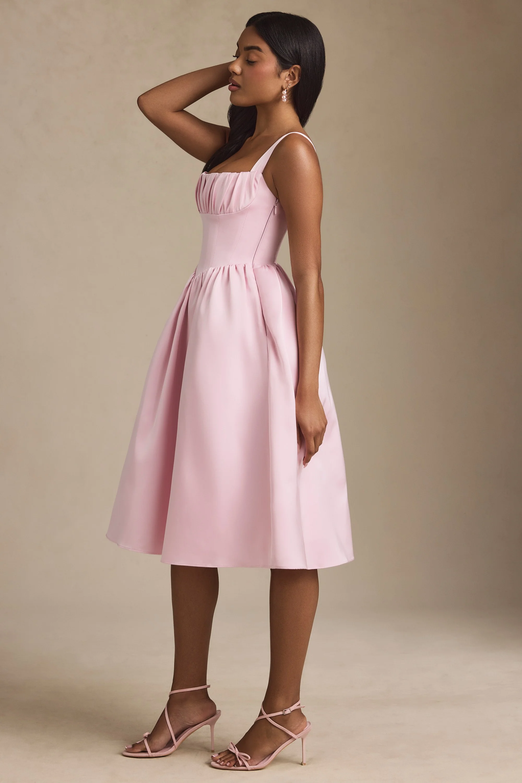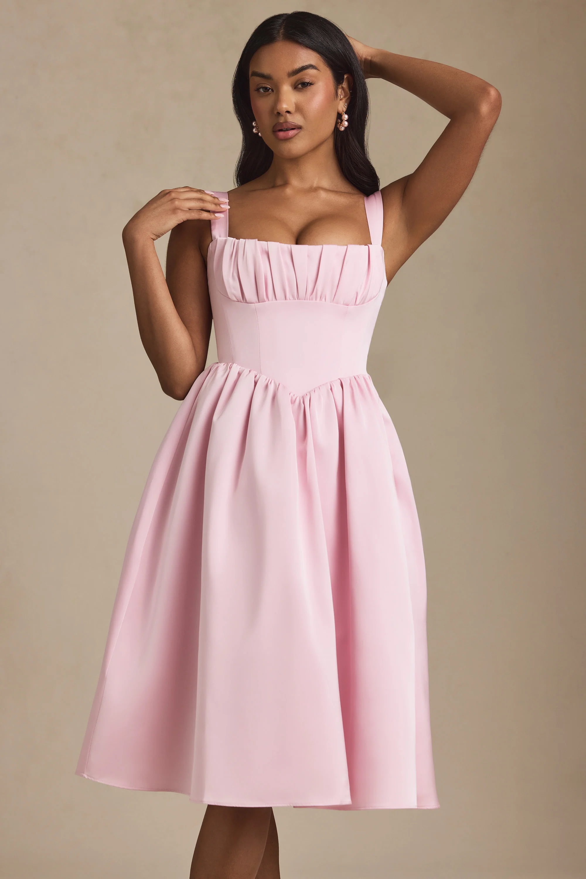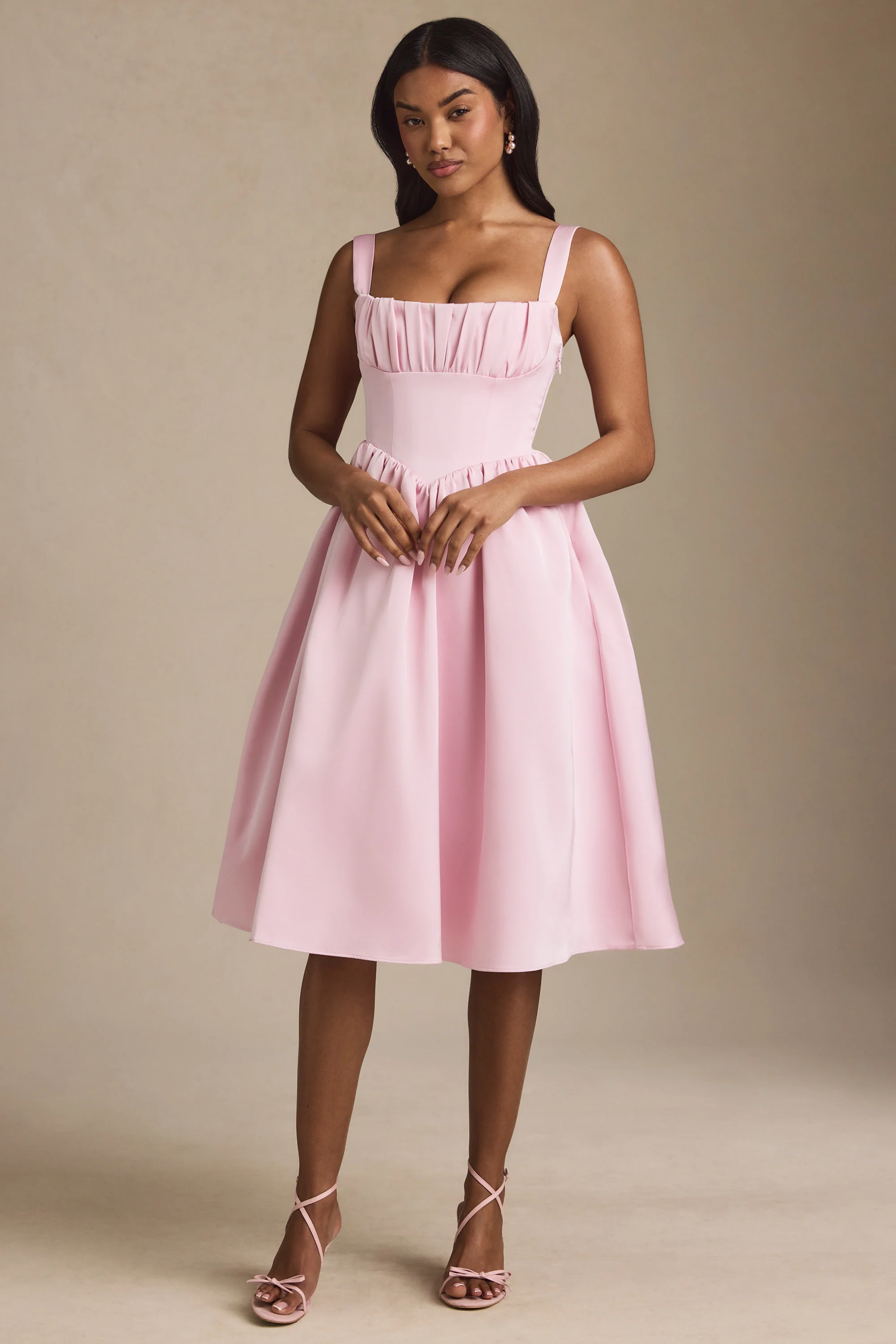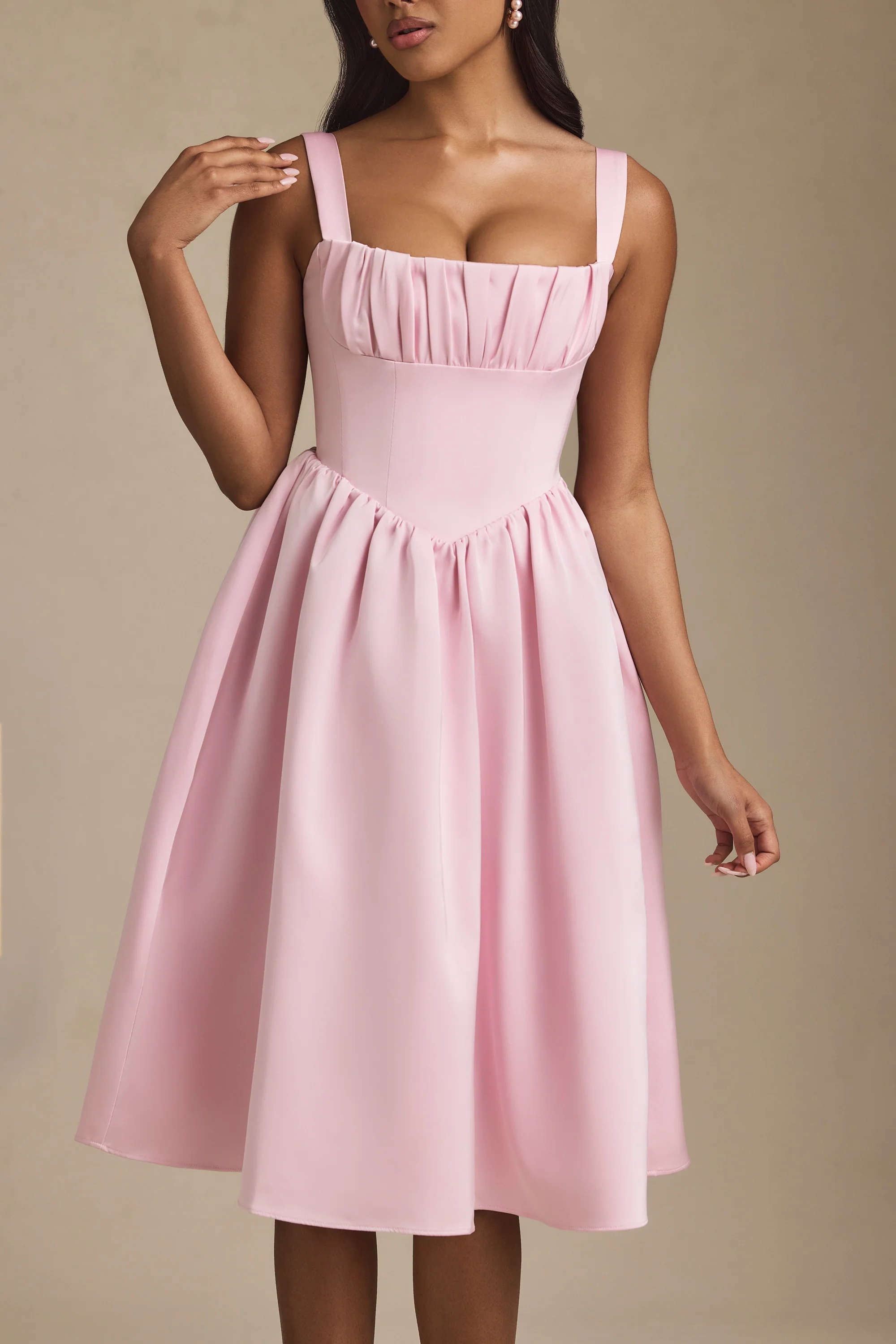 Halterneck Lace-Up Bubble Hem Corset Micro Mini Dress in Mauve