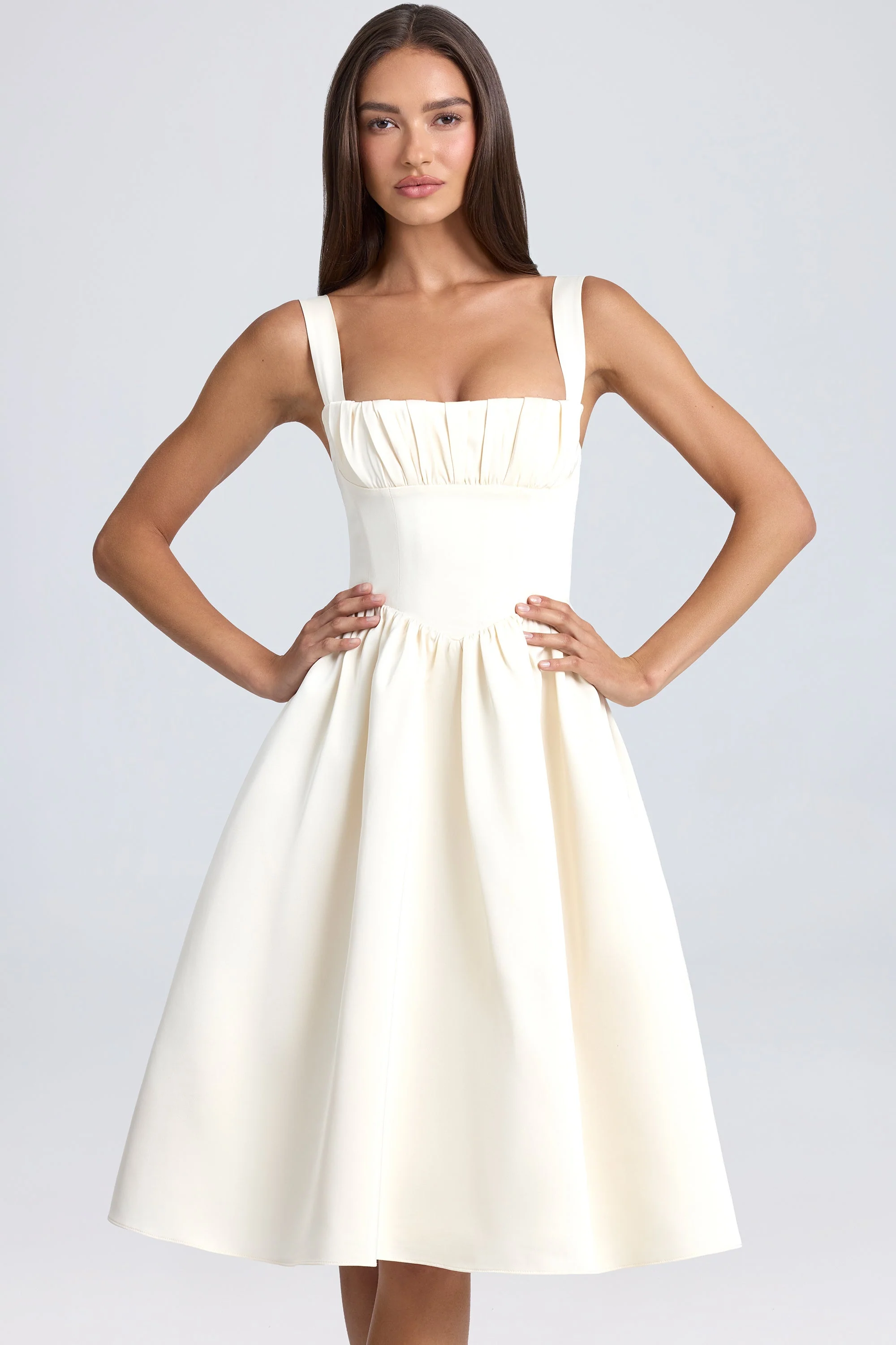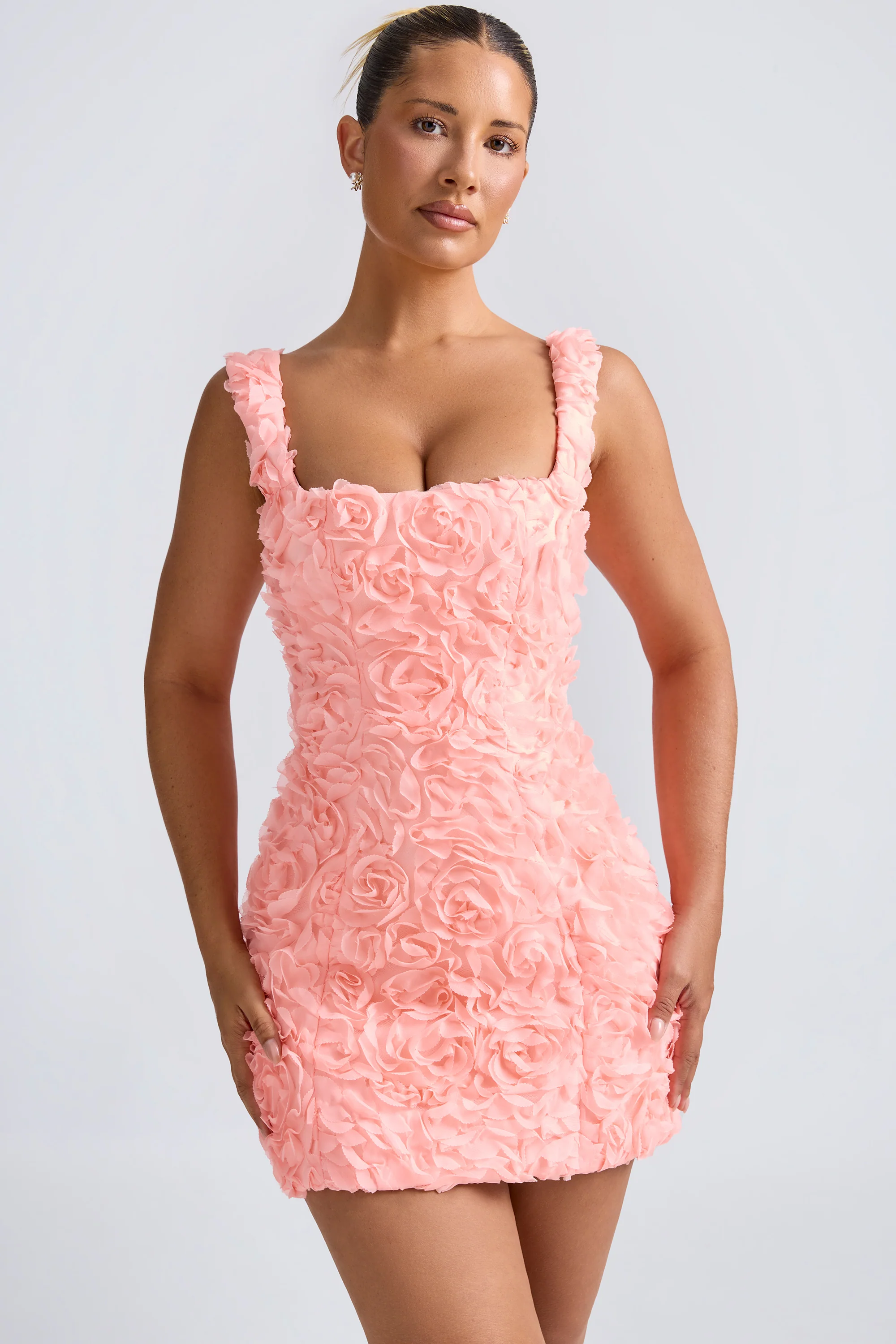 Bandeau Floral-Appliqué Corset Mini Dress in Ivory