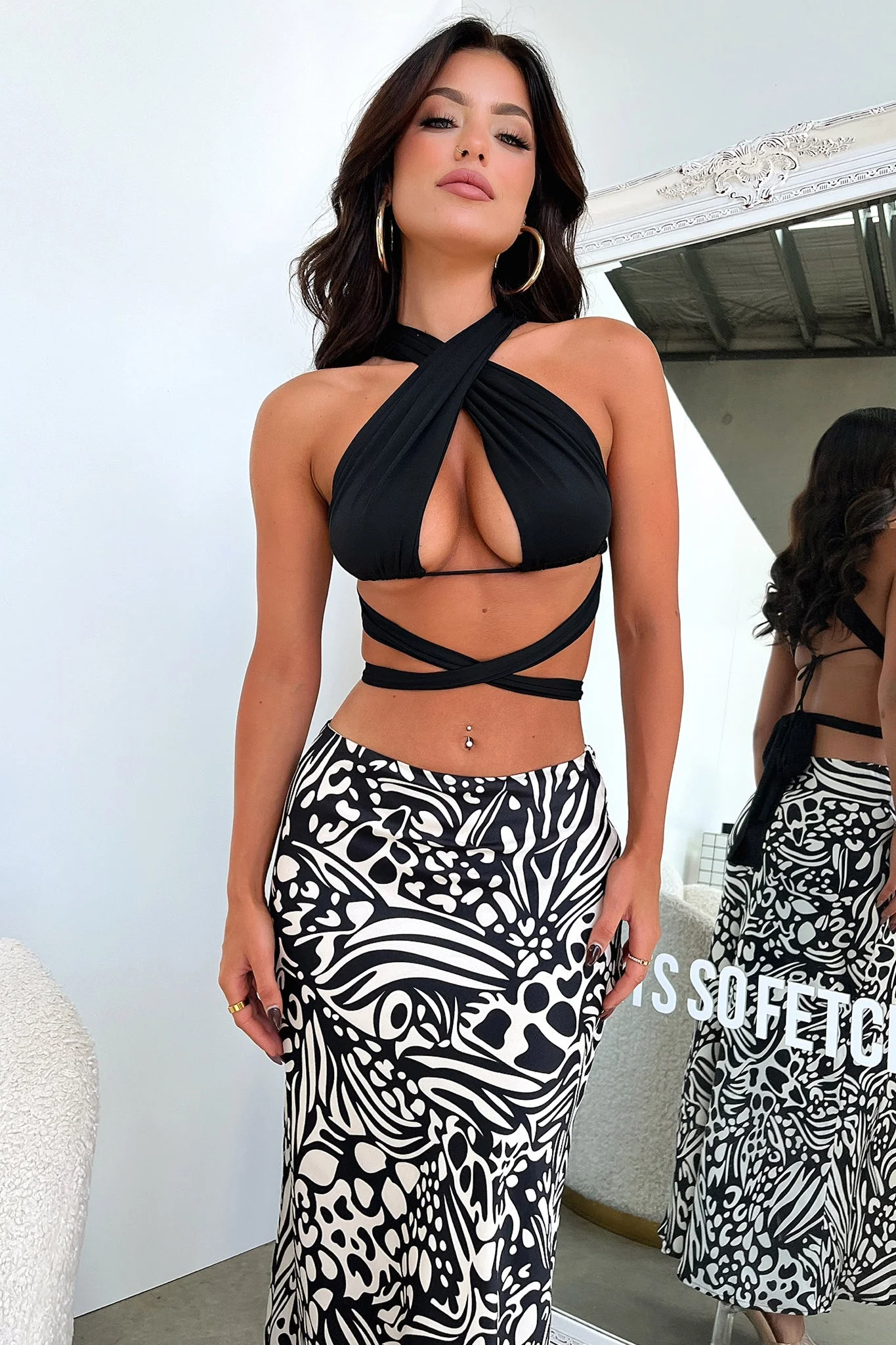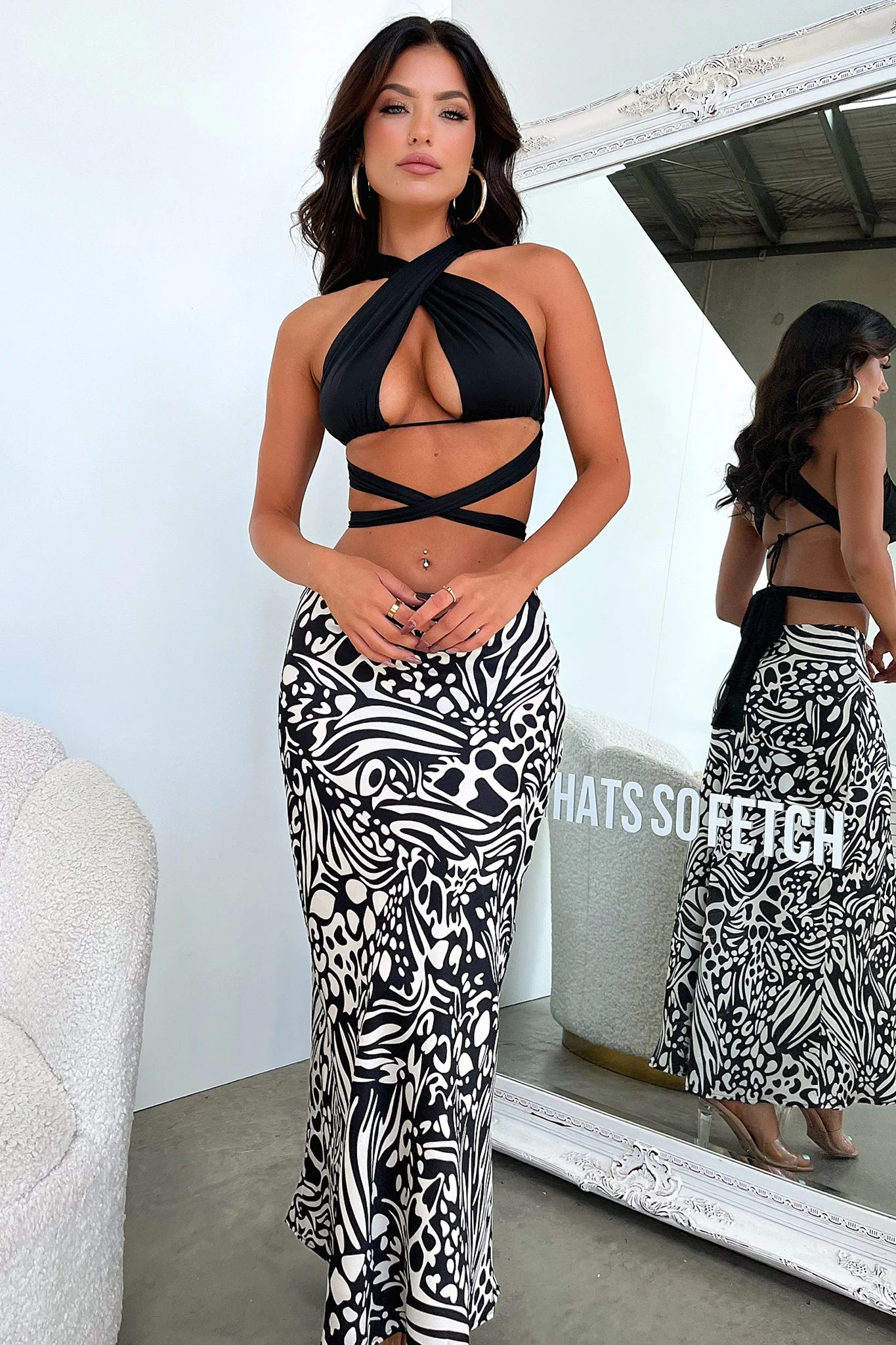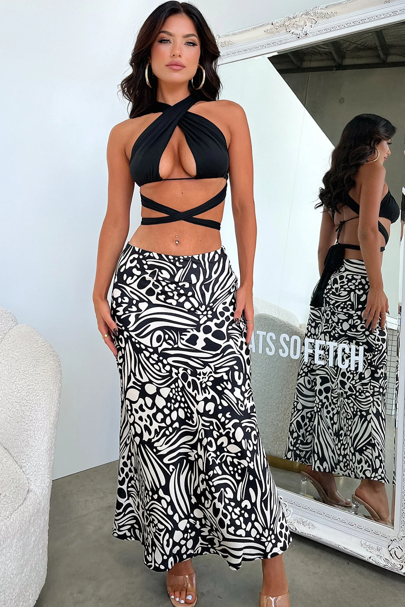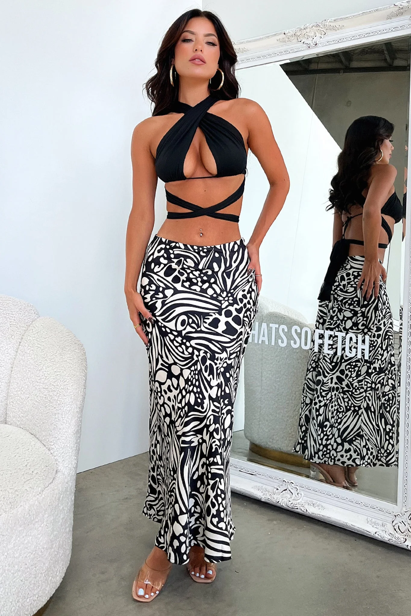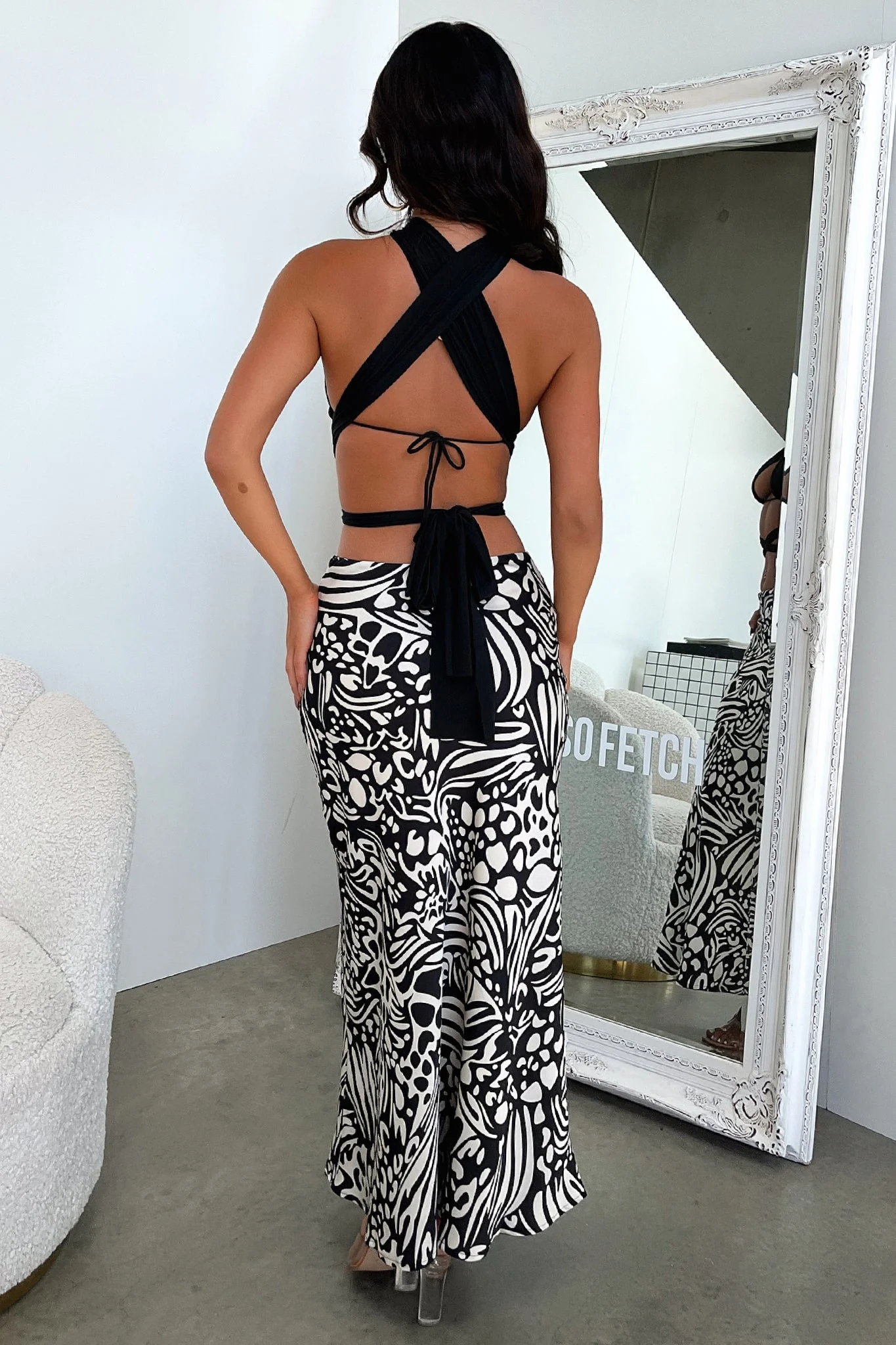 Santorini Maxi Skirt - Black / White Print